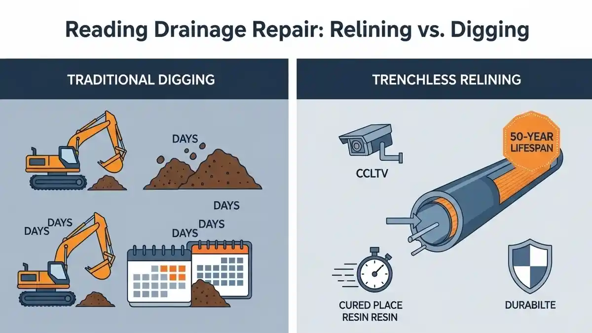 Avoid costly, messy excavations. Compare Wallington Drain Relining vs Digging to save your home, time, and money with our expert, minimally invasive, and durable no-dig repair solutions for local drains.